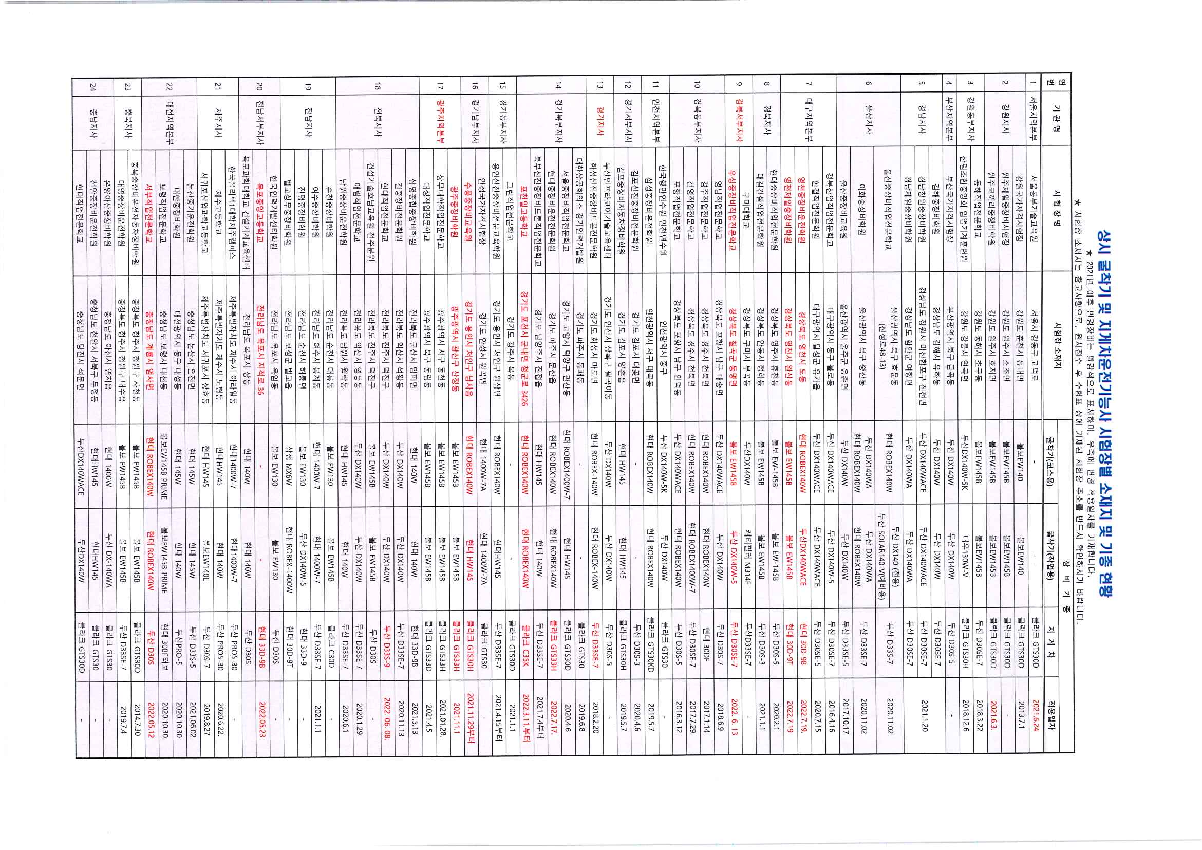| Á¦¸ñ | [¾È³»] »ó½Ã½ÃÇè (Áö°ÔÂ÷, ±¼Âø±â) ½ÃÇèÀå º° Àåºñ ±âÁ¾ ¾È³» 2 |