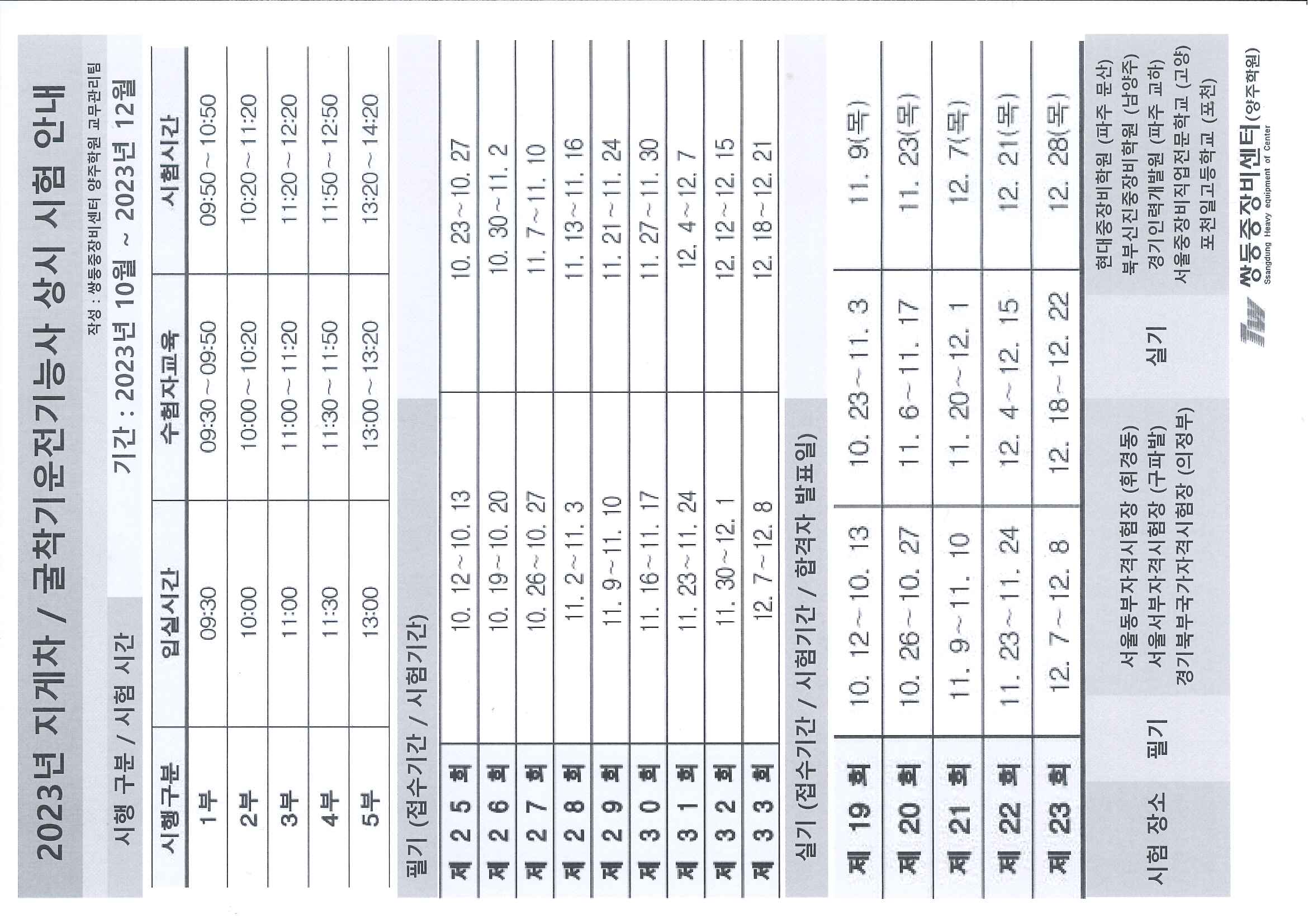 | Á¦¸ñ | [¾È³»] 2023³â 10¿ù ~ 12¿ù Áö°ÔÂ÷, ±¼Âø±â »ó½Ã½ÃÇè ÀÏÁ¤¾È³» |